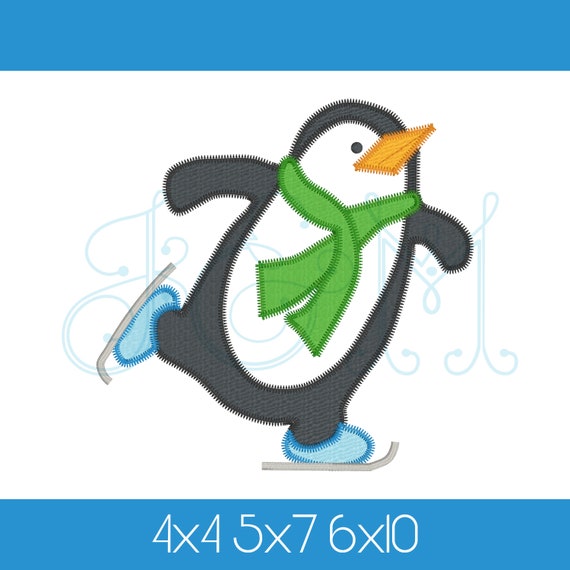 Penguin In A Scarf Ice Skating Zig Zag Stitch Applique Winter Etsy